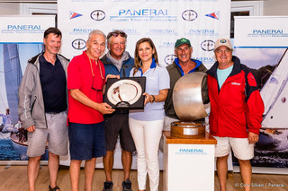 RESOLUTE Crew at the Panerai awards ceremony. Left to Right: Paul Conway, Jonathan Harvey, Panerai presenter, Jack Alexander, Brian Cardillo and Paul Chasse. Photo © Cory Silken / Panerai